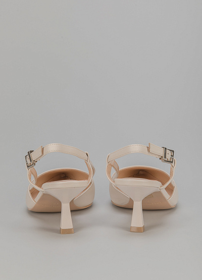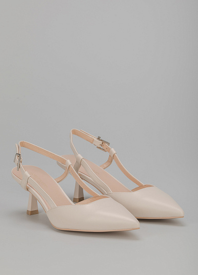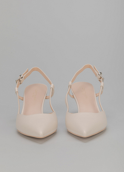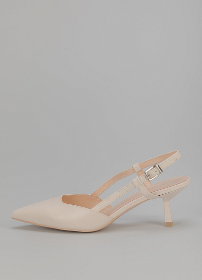 • Туфли из натуральной кожи от бренда  Loretta Very. Модель с заостренным носком. Открытая пятка. Застежка-ремешок на щиколотке. Каблук средней высоты.