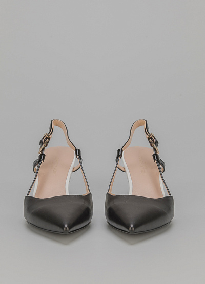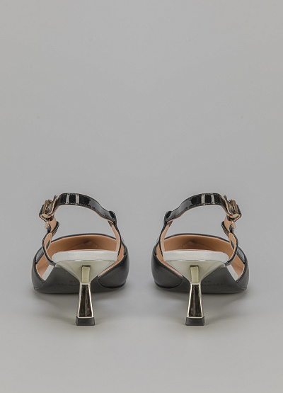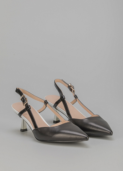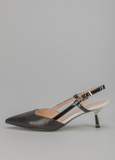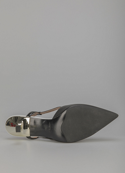 • Туфли из натуральной кожи от бренда  Loretta Very. Модель с заостренным носком. Открытая пятка. Застежка-ремешок на щиколотке. Каблук средней высоты.