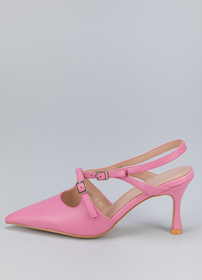 • Женские туфли розового цвета из натуральной кожи от бренда Loretta Very. Модель с открытой пяткой и изящными ремешками - это неотъемлемая часть летнего гардероба. Заостренный носок, дополненный ремешком на застежке придает шарм. Плоская подошва на среднем каблуке, за счет чего комфортны в носке на протяжение всего дня.