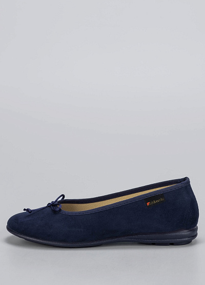 • Минималистичные балетки Alberola в тёмно-синем оттенке — идеальный вариант для тех, кто ценит комфорт и стиль. Классическая форма с аккуратным бантиком, бархатистая фактура верха и лёгкая подошва делают эту модель фаворитом на каждый день.