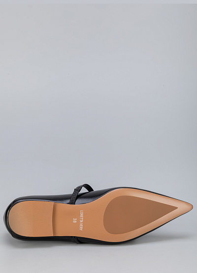 • Женские балетки черного цвета из натуральной кожи от бренда Loretta Very. Модель с заостренным носком и ремешком на застежку, которая своим уникальным дизайном впишется в гардероб современной женщины и девушки. Плоская сплошная подошва и удобная колодка создают удобства для стопы в течение всего дня.