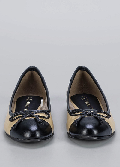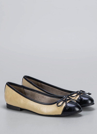 • Женские балетки бежевые с чёрным носком и бантиком. Элегантные и универсальные балетки для повседневных образов. Модель выполнена в классическом сочетании бежевого и чёрного цветов. Закруглённый носок с лаконичным бантиком придаёт образу утончённость, а мягкая внутренняя подкладка обеспечивает комфорт на весь день. Идеальный вариант для офиса, прогулок или встреч — сочетается как с платьем, так и с джинсами.