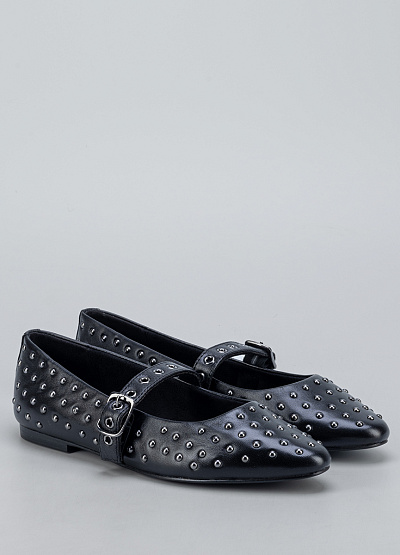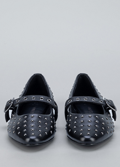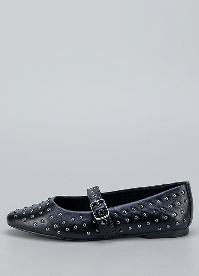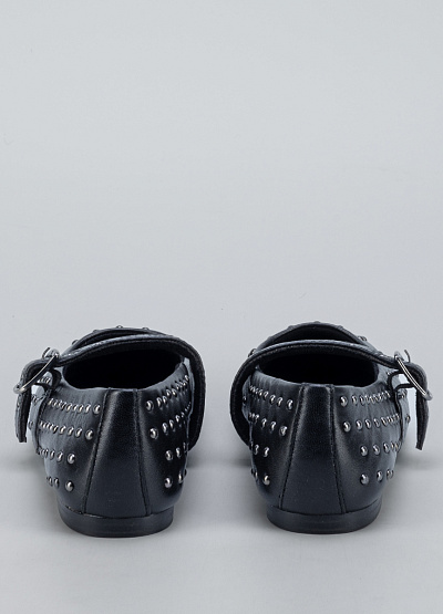 • Стильные женские балетки Marco Tozzi в чёрном цвете — отличный выбор для тех, кто хочет добавить образу немного дерзости и выразительности. Модель выполнена из гладкого материала и украшена множеством металлических заклёпок, создающих эффектную текстуру. Ремешок с пряжкой не только украшает обувь, но и обеспечивает комфортную посадку на стопе.