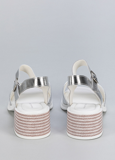 • Женские серебристые босоножки — блеск и комфорт в одном образе.