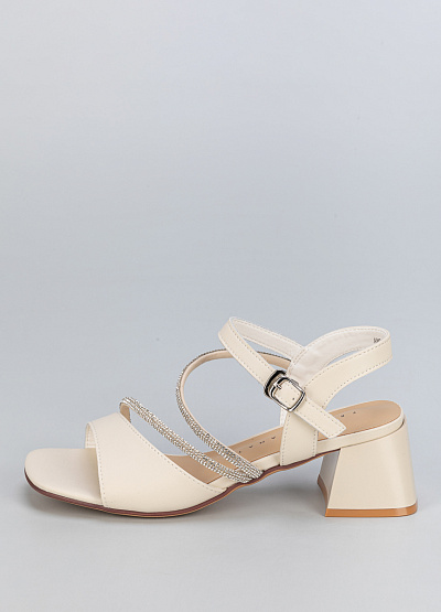 — Молочный цвет, подчёркнутый сиянием страз на тонких ремешках