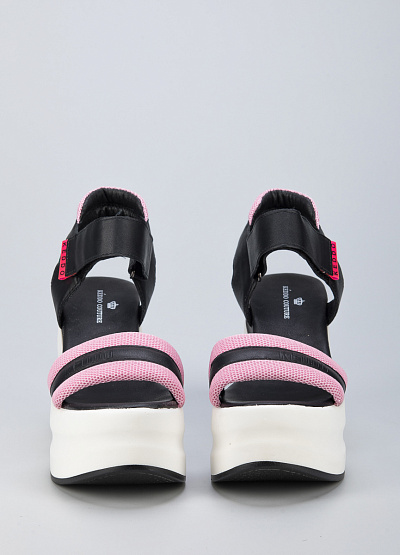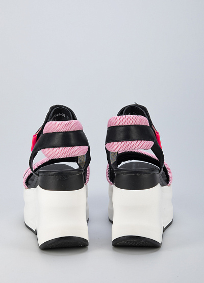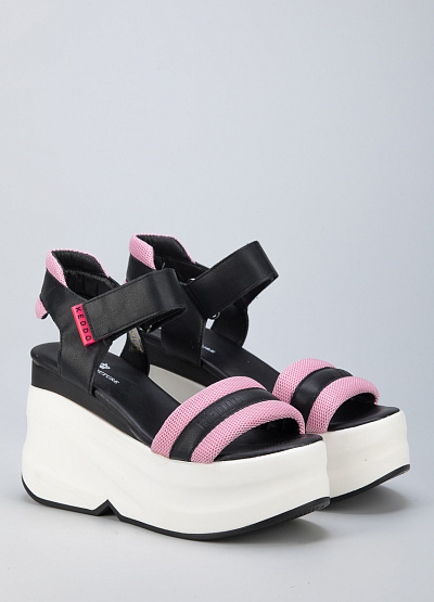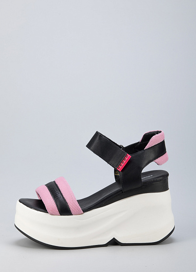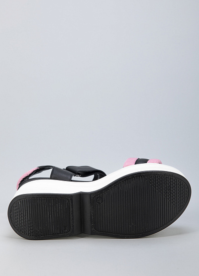 • Комбинированные босоножки из натуральной кожи от бренда Keddo. Модель с дутыми ремешками. Застежка-липучка на щиколотке. Массивная подошва с завышенным подъемом.