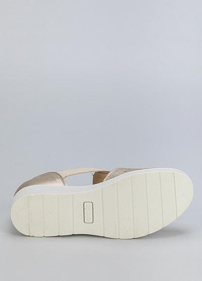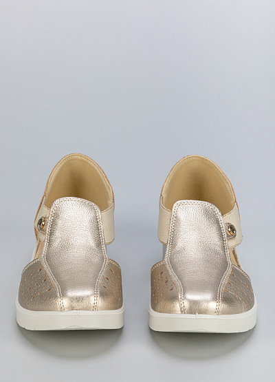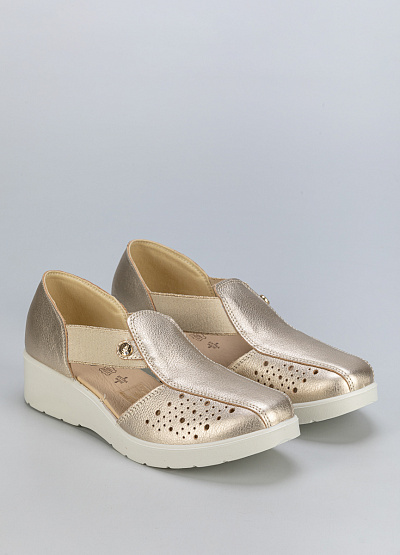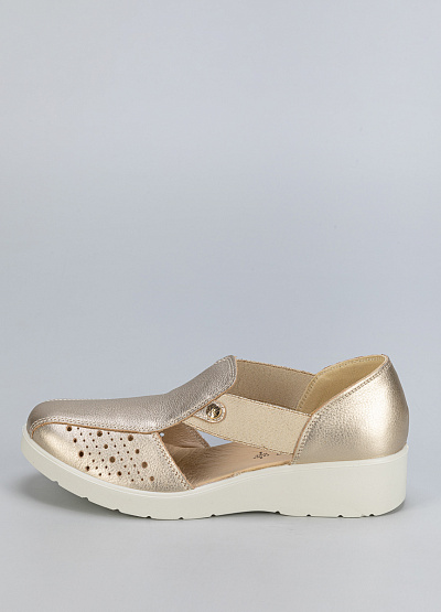 • Закрытые женские босоножки золотистого цвета с эластичной вставкой — комфорт и стиль каждый день.