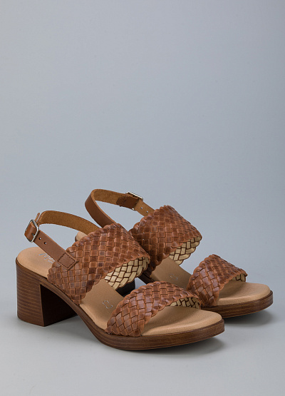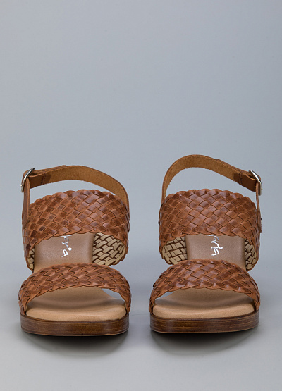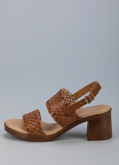 • Босоножки из натуральной кожи от бренда Mar Maria. Два широких ремешка с мелким переплетением. Застежка-ремешок на щиколотке. Устойчивый каблук средней высоты.