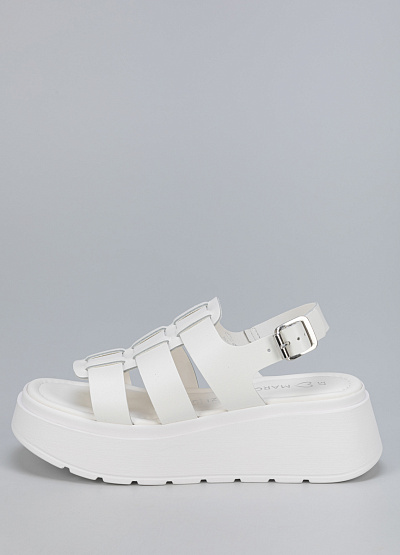 • Женские босоножки белого цвета из натуральной кожи от бренда Tamaris. Они служат не просто стильным дополнением, а отдельно играющим элементом вашего образа. Открытая пятка и носок придадут уникальности, а широкая подошва на сделает шаг уверенным.