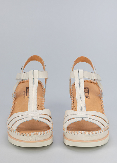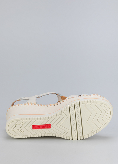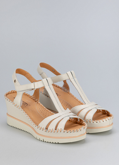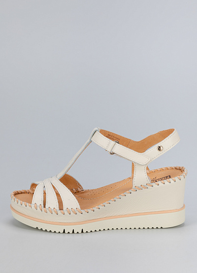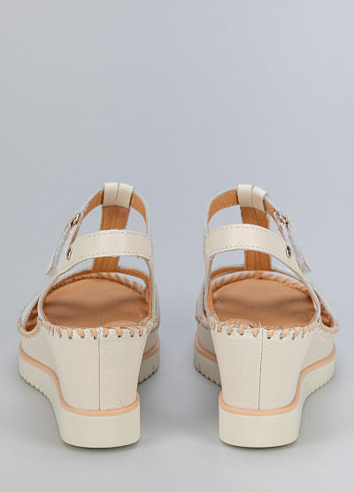 • Женские босоножки сливочного цвета из натуральной кожи от бренда Pikolinos. Элегантная модель с ремешками, открытым носом и пяткой – классика на все времена. Эти босоножки на танкетке подойдут для создания невероятно красивых вечерних образов.