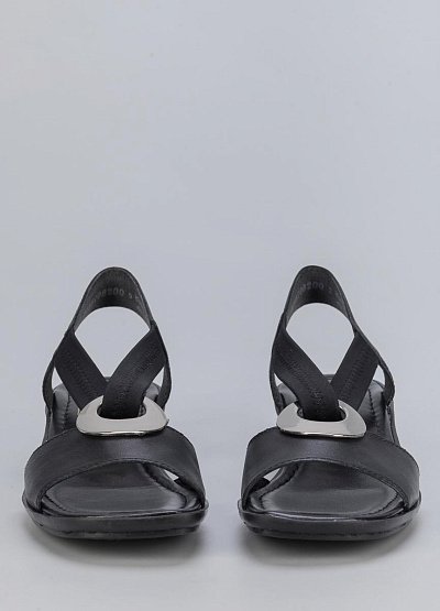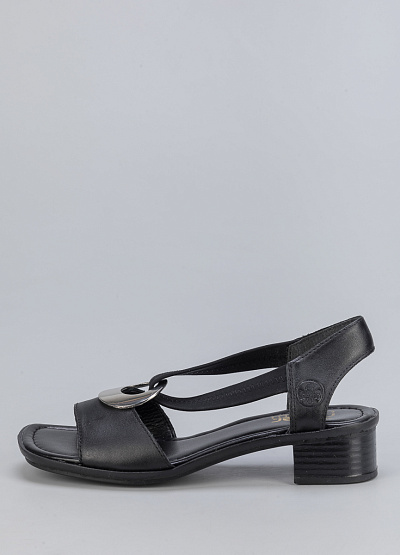 • Женские босоножки из натуральной кожи и текстиля от бренда Rieker. Модель с эластичными ремешками. Декоративное кольцо по центру. Плоская подошва на низком каблуке.