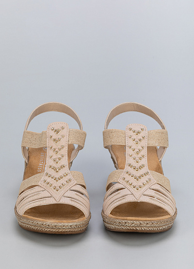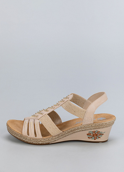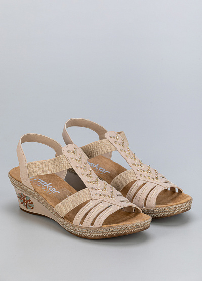 • Женские бежевые босоножки Rieker — гармония комфорта и изящных деталей.