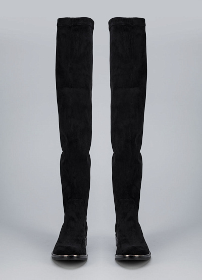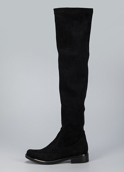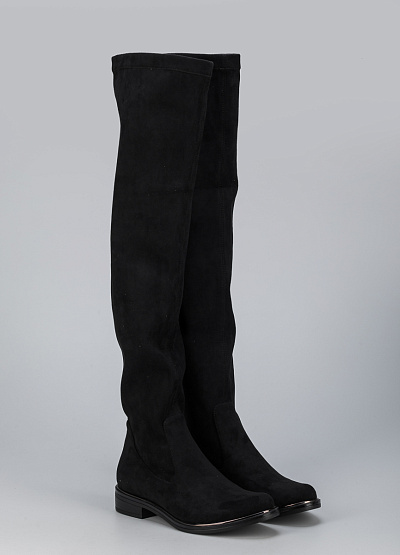 • Женские ботфорты от бренда Caprice. Модель выше колен. Закругленный носок. Металлические вставки вдоль стопы. Плоская подошва на низком каблуке.
