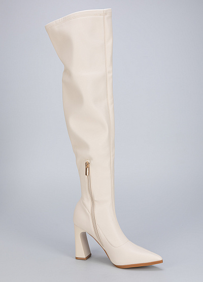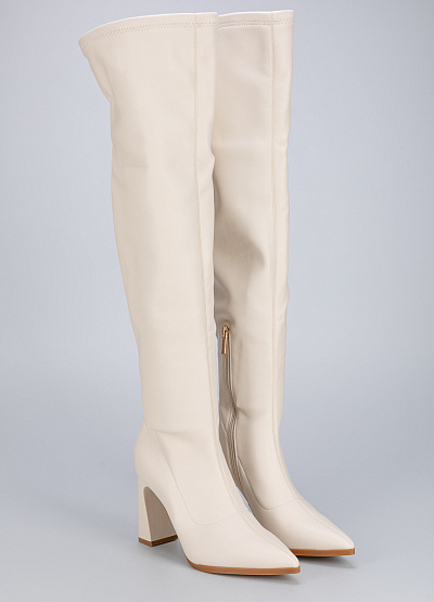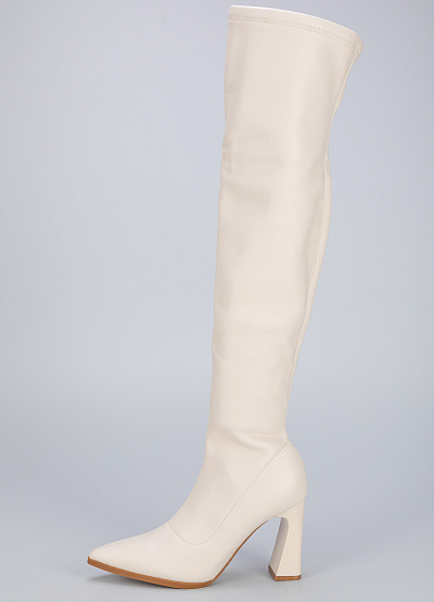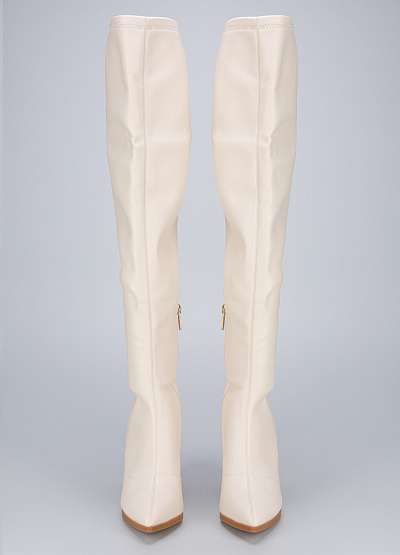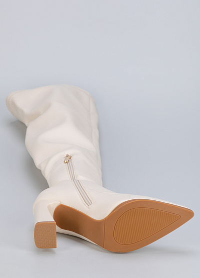 • Женские ботфорты белого цвета из экокожи от бренда Keys. Модель теплая и комфортная. Заостренный носок. Изящный и устойчивый каблук. Ваш образ станет с ними более стильным и женственным.