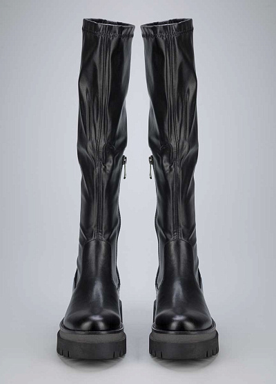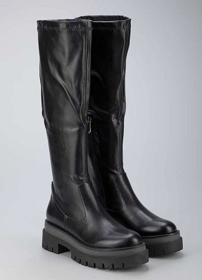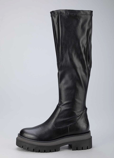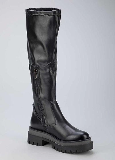 • Женские ботфорты из экокожи от бренда Marco Tozzi. Закругленный носок. Замок на молнии сбоку. Массивная подошва.