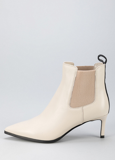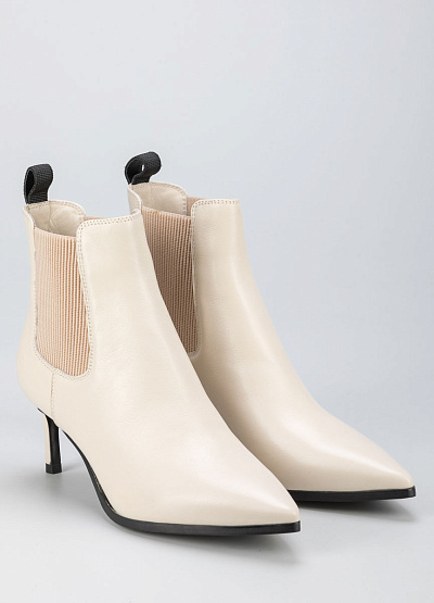 • Ботильоны из натуральной кожи от бренда Franco Manatti. Заостренный носок. Эластичные вставки по бокам. Контрастная полоска на пятке. Петли для подтягивания сзади. Плоская подошва на среднем каблуке.