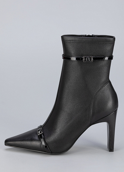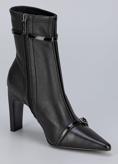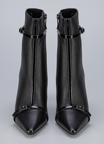 • Женские ботильоны черного цвета из натуральной и лаковой кожи от бренда Loretta Very. Высокая голень. Заостренный носок. Изящный каблук. Ваш образ станет с ними более стильным и женственным, за счет украшения в виде ремешков.