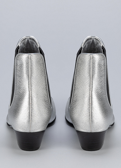 • Женские ботильоны серебрянного цвета из натуральной кожи от бренда Loretta Very. Ваш образ станет с ними более стильным и женственным. Модель с высокой голенью. Заостренный носок. Эластичные вставки по бокам. Изящный каблук.