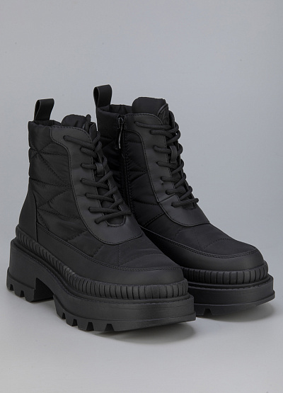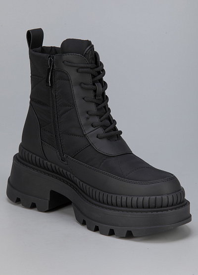 • Женские ботинки от бренда Betsy. Закругленный носок. Открытая шнуровка в тон. Боковая молния. Петли для подтягивания сзади. Широкая рифленая подошва на устойчивом каблуке.