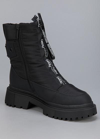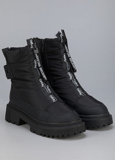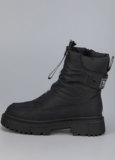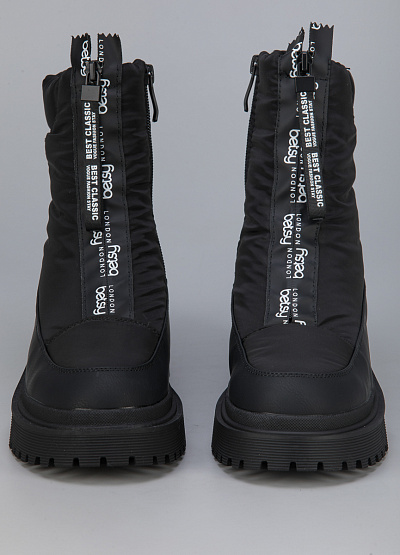 • Женские ботинки от бренда Betsy. Закругленный носок. Молния по центру с принтом. Боковая молния. Петли для подтягивания сзади. Логотип сбоку. Широкая рифленая подошва на устойчивом каблуке.