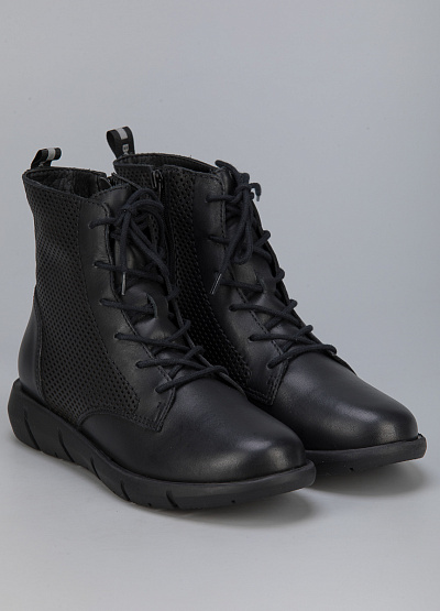 • Женские ботинки из натуральной кожи от бренда Bottero. Закругленный носок. Открытая шнуровка в тон. Петли для подтягивания сзади. Плоская рифленая подошва.