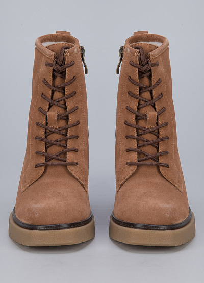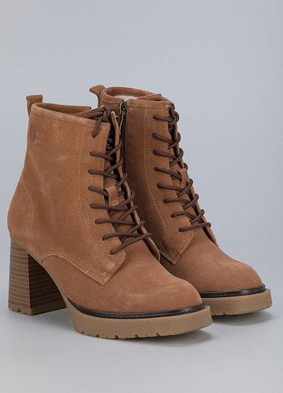 • Женские ботинки из натуральной кожи от бренда Caprice. Закругленный носок. Открытая шнуровка в тон. Тисненый логотип сбоку. Боковой замок. Петли для подтягивания сзади. Широкая рифленая подошва на устойчивом каблуке.