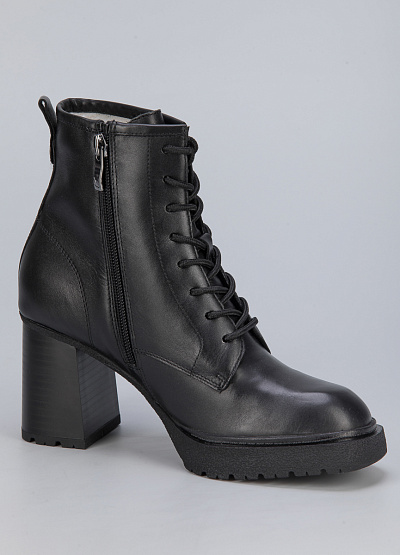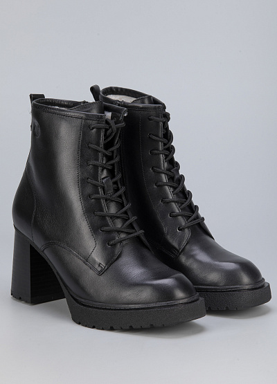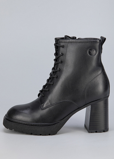 • Женские ботинки из натуральной кожи от бренда Caprice. Закругленный носок. Открытая шнуровка в тон. Тисненый логотип сбоку. Боковой замок. Петли для подтягивания сзади. Широкая рифленая подошва на устойчивом каблуке.
