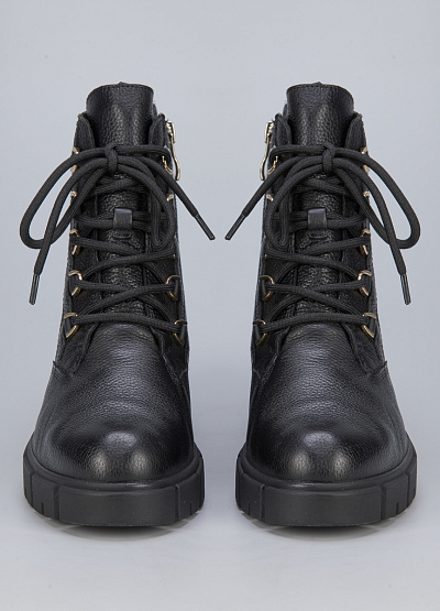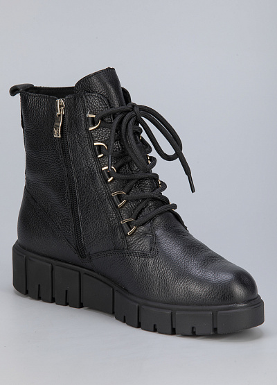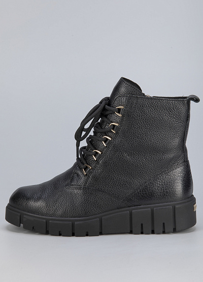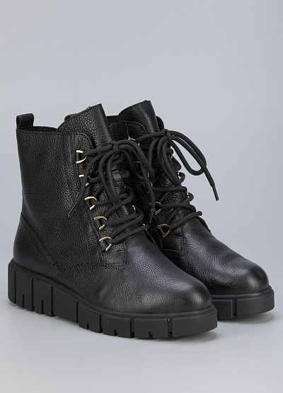 • Женские ботинки из натуральной кожи от бренда Caprices. Закругленный носок. Открытая шнуровка в тон. Замок на молнии сбоку. Петли для подтягивания сзади. Массивная рифленая подошва. Логотип сзади.