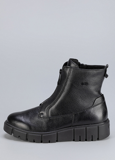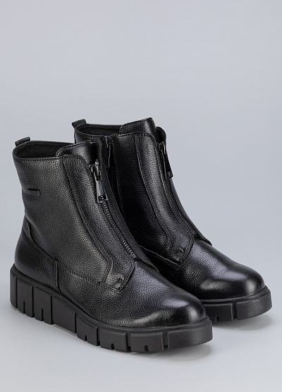 • Женские ботинки черного цвета из натуральной кожи от бренда Caprice. Молния по центру обеспечивает комфортное надевание, а широкая подошва гарантирует идеальную поддержку стопы, делая каждый ваш шаг легким и комфортным.