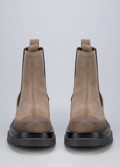 • Женские ботинки из замши от бренда Creator. Закругленный носок. Эластичные вставки по бокам. Петли для подтягивания сзади и спереди. Массивная рифленая подошва.