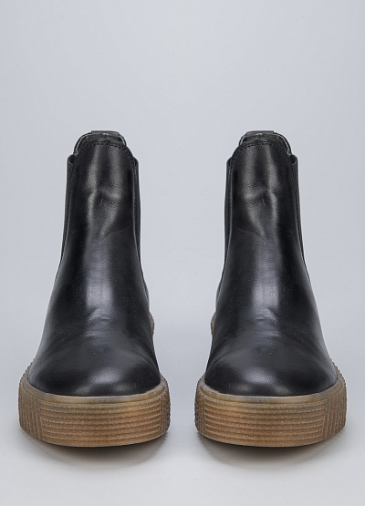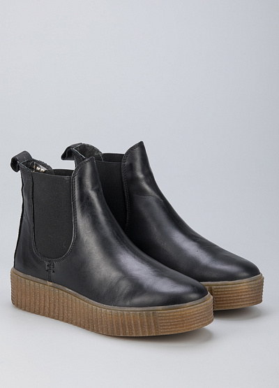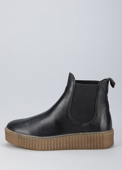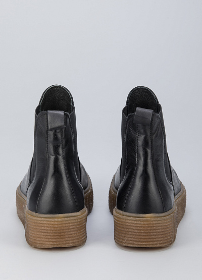 • Женские ботинки из натуральной кожи от бренда Creator. Эластичные вставки по бокам. Закругленный носок. Петли для подтягивания сзади. Широкая рифленая подошва.