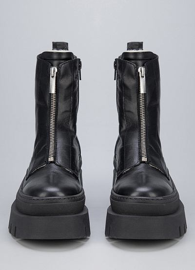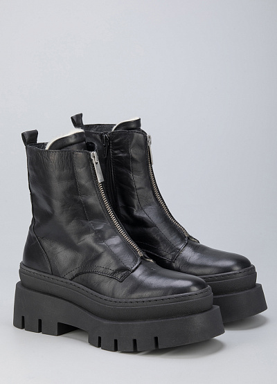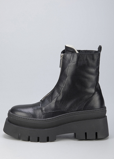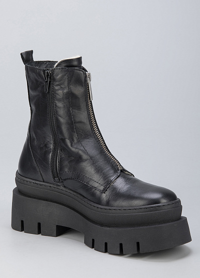 • Женские ботинки из натуральной кожи от бренда Creator. Закругленный носок. Застежка-молния по центру и сбоку. Петли для подтягивания сзади. Массивная рифленая подошва.
