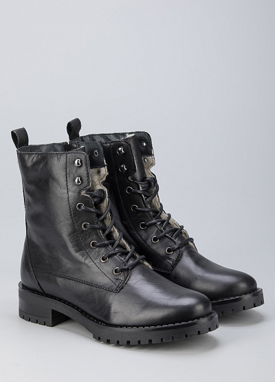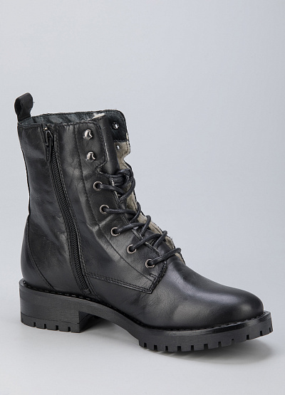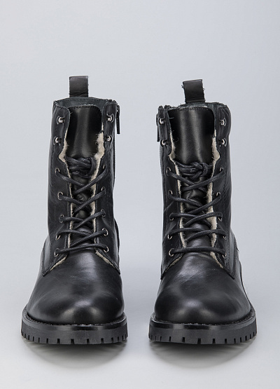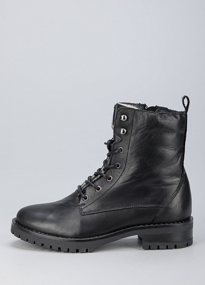 • Женские ботинки из натуральной кожи от бренда Creator. Закругленный носок. Открытая шнуровка в тон. Петли для подтягивания сзади. Массивная рифленая подошва на низком каблуке.