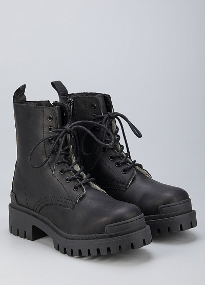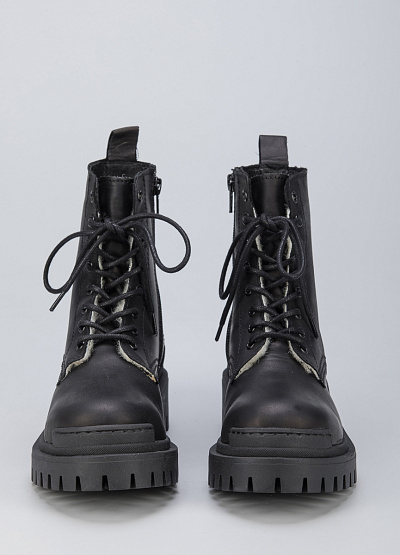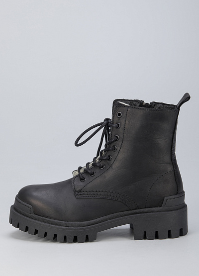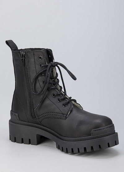 • Женские ботинки из натуральной кожи от бренда Creator. Закругленный носок. Открытая шнуровка в тон. Петли для подтягивания сзади. Массивная рифленая подошва на низком каблуке.