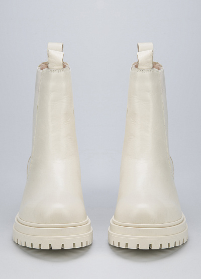 • Женские ботинки из натуральной кожи от бренда Creator. Закругленный носок. Эластичные вставки по бокам. Петли для подтягивания сзади и спереди. Массивная рифленая подошва на низком каблуке.