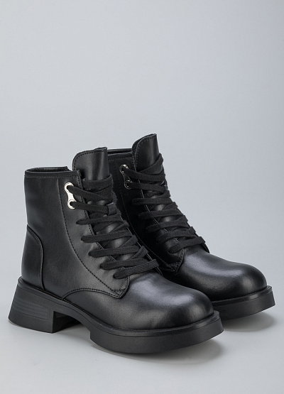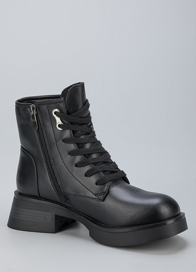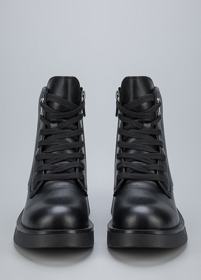 • Женские ботинки из натуральной кожи от бренда Finn Line. Открытая шнуровка в тон. Закругленный носок. Боковая молния. Массивная подошва на каблуке.