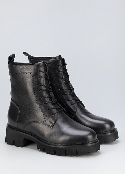 • Женские ботинки из натуральной кожи от бренда Franco Manatti. Открытая шнуровка в тон. Закругленный носок. Боковая молния. Петли для подтягивания сзади. Рифленая подошва на устойчивом каблуке.