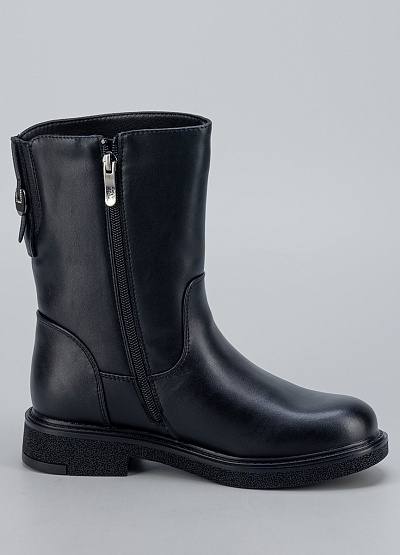 • Стильные черные сапоги с лаконичным дизайном — практичный и универсальный вариант на каждый день. Модель выполнена из гладкого материала с мягким блеском, имеет удобную среднюю высоту голенища и устойчивую подошву. Подходят для демисезонного и зимнего периода благодаря плотной структуре и комфортной посадке. Отлично смотрятся как с джинсами, так и с casual-платьями.