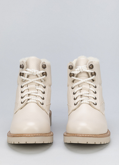 • Женские ботинки из натуральной кожи от бренда Inwood. Модель с высокой голенью. Закругленный носок. Открытая шнуровка в тон. Боковой замок. Тракторная подошва на низком каблуке.