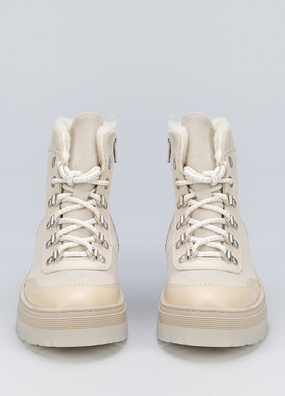 • Женские ботинки из натуральной кожи от бренда Inwood. Модель с высокой голенью. Закругленный носок. Открытая шнуровка в тон. Массивная подошва на низком каблуке.