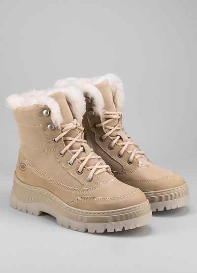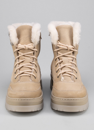 • Женские ботинки из натуральной кожи от бренда Inwood. Закругленный носок. Открытая шнуровка в тон. Тисненый логотип сбоку. Боковой замок. Меховая отделка внутри. Широкая рифленая подошва.