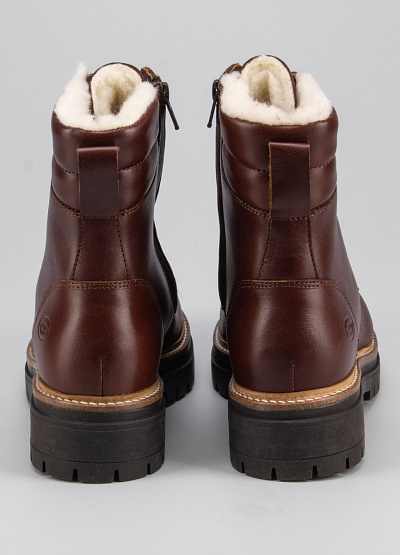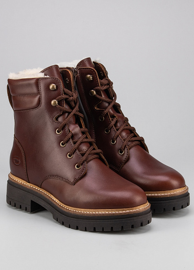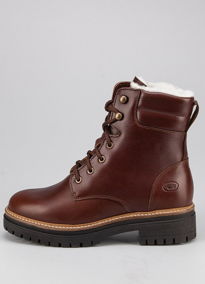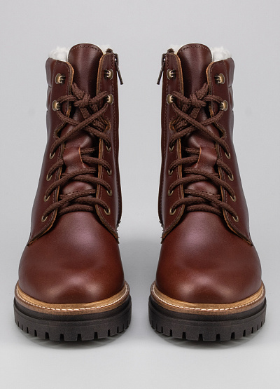 • Женские ботинки из натуральной кожи от бренда Inwood. Закругленный носок. Открытая шнуровка в тон. Тисненый логотип сбоку. Меховая отделка внутри. Плоская рифленая подошва.