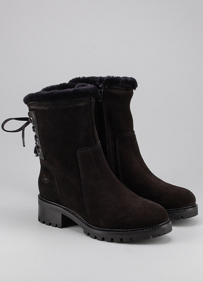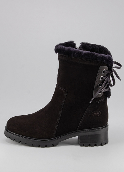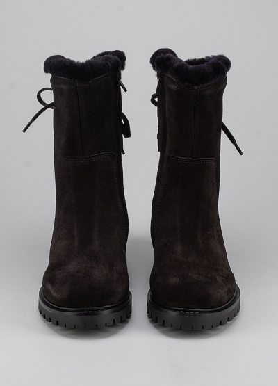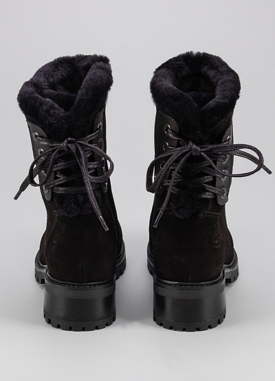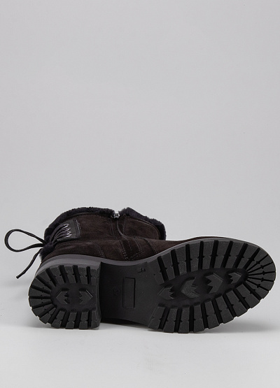 • Женские ботинки из натуральной замши от бренда Inwood. Закругленный носок. Открытая шнуровка в тон сзади. Тисненый логотип сбоку. Боковой замок. Меховая отделка внутри. Плоская рифленая подошва.