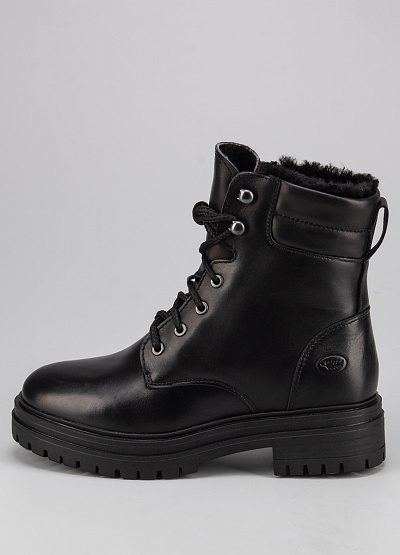 • Женские ботинки из натуральной кожи от бренда Inwood. Закругленный носок. Открытая шнуровка в тон. Тисненый логотип сбоку. Петли для подтягивания сзади. Меховая отделка внутри. Плоская рифленая подошва.