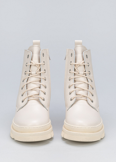 • Женские ботинки из натуральной кожи от бренда Inwood. Модель с высокой голенью. Закругленный носок. Открытая шнуровка в тон. Массивная подошва на низком каблуке.