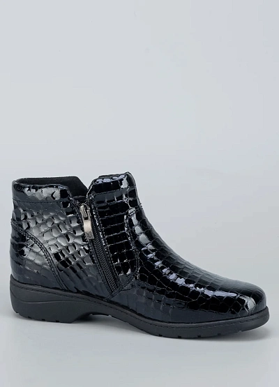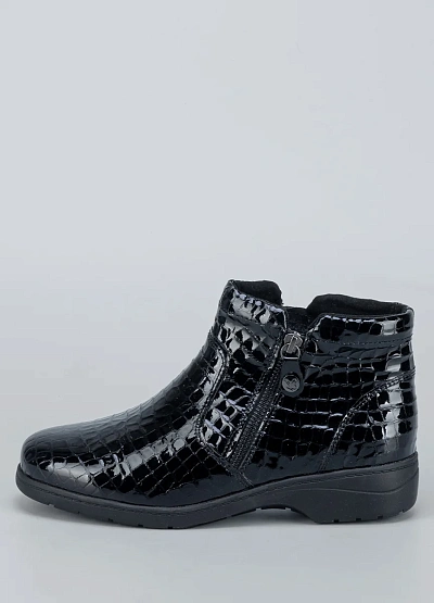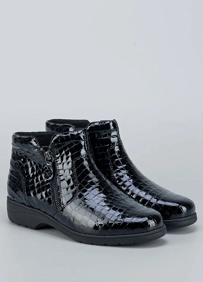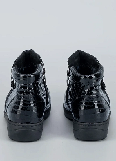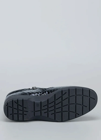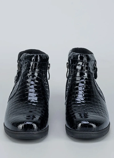 • Зимние полусапоги из лаковой кожи с эффектом под крокодила — роскошный и практичный выбор на каждый день. Внутри — тёплая подкладка, а снаружи — водоотталкивающая поверхность.