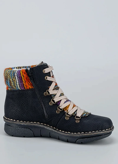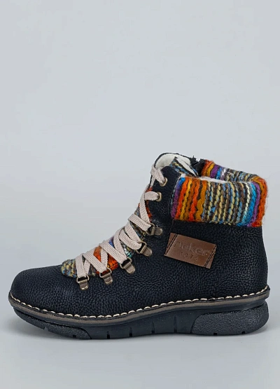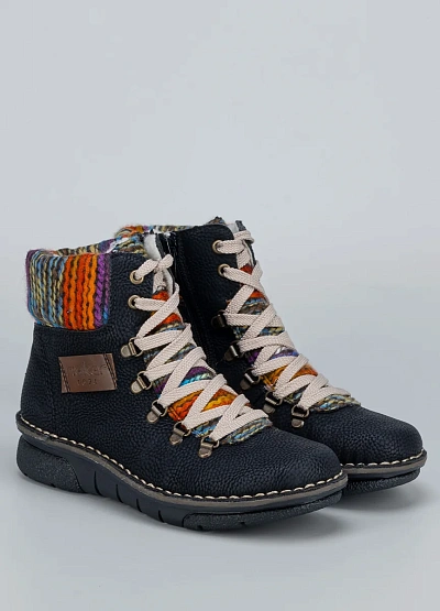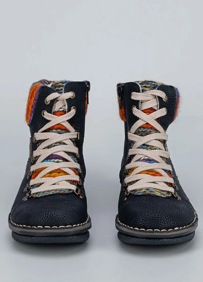 • Уютные женские ботинки от бренда Rieker выполнены из экокожи и текстиля с фактурной поверхностью.