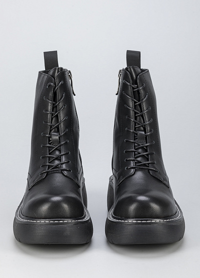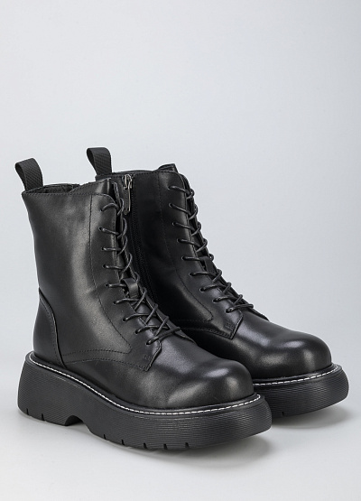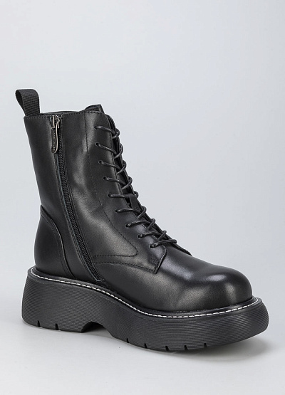 • Женские ботинки из натуральной кожи от бренда Loretta Very. Закругленный носок. Высокая шнуровка в тон. Боковая молния. Петли для подтягивания сзади. Высокая рифленая подошва.
