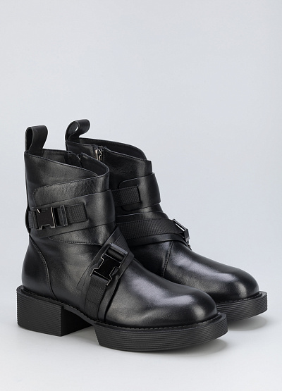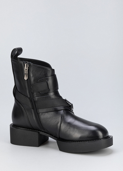 • Женские ботинки из натуральной кожи от бренда Loretta Very. Закругленный носок. Застежки на ремешках вокруг голени. Боковая молнию. Петли для подтягивания сзади. Широкая подошва на устойчивом каблуке.