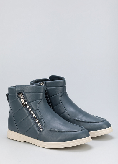 • Женские ботинки из натуральной кожи от бренда Loretta Very. Стеганая модель. Закругленный носок. Мыс оформлен рельефным швом.  Боковая молния. Петли для подтягивания сзади. Плоская подошва.